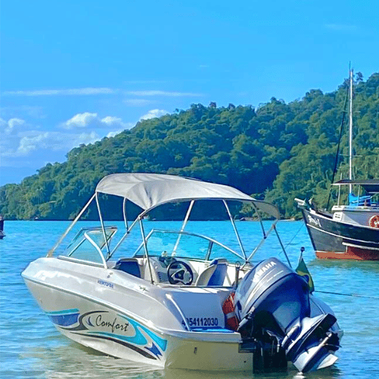 Passeio de lancha em Paraty com duração de 06 horas visitando as mais belas praias e ilhas da Baía de Paraty, com natureza exuberante e águas cristalinas.